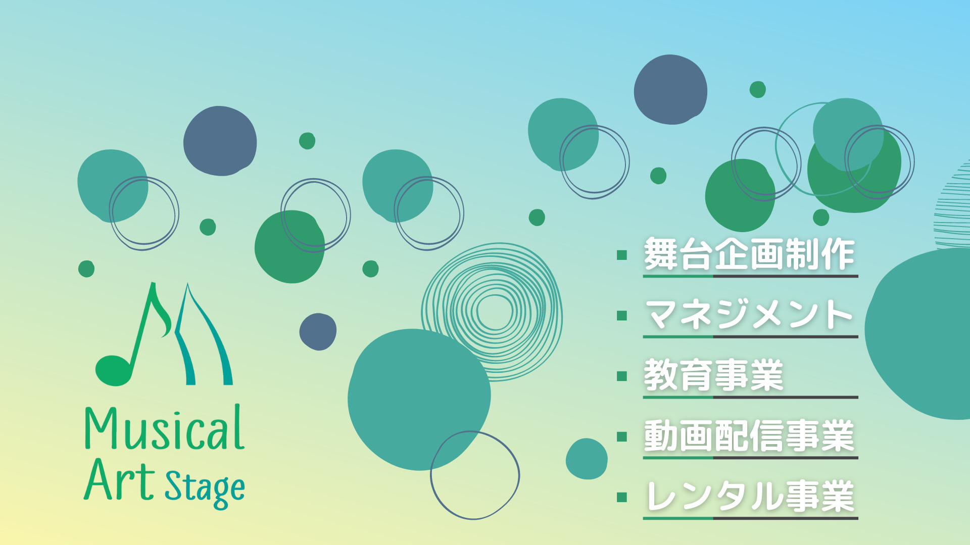 株式会社Musical Art Stageは、演劇・ミュージカルショーなどの舞台企画制作、舞台公演のマネジメントや劇団員養成の教育事業、また、動画配信事業、レンタル事業などを行っています